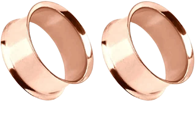 Rose Gold Plated Double Flared Tunnel Plug Earrings. Made of 316L Stainless Steel